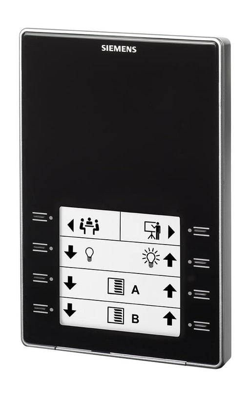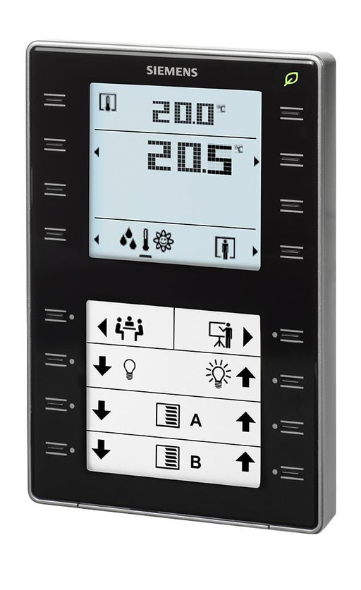 SIEMENSRuimtebediening KNX met temperatuuropnemer, display met achtergrondverlichting, configureerbare touch toetsen, LED display, zwarte uitvoering Do...